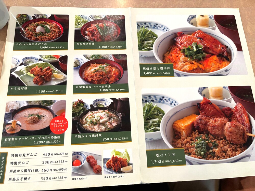 親子丼、焼鳥丼、唐揚げ膳、坦々茶漬け風の鶏スープ丼など、鶏料理だけでこれだけ選べるのは嬉しいポイント。