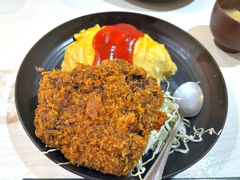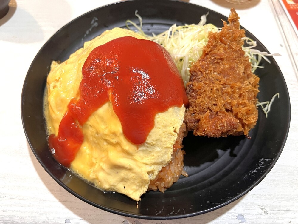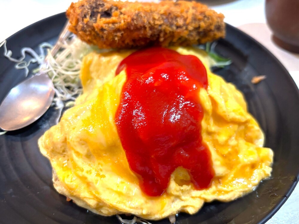 たまごは半熟でプルプル。上にはケチャップがのっていて、この酸味がちょうどよく、こちらもペロリと食べられました。
